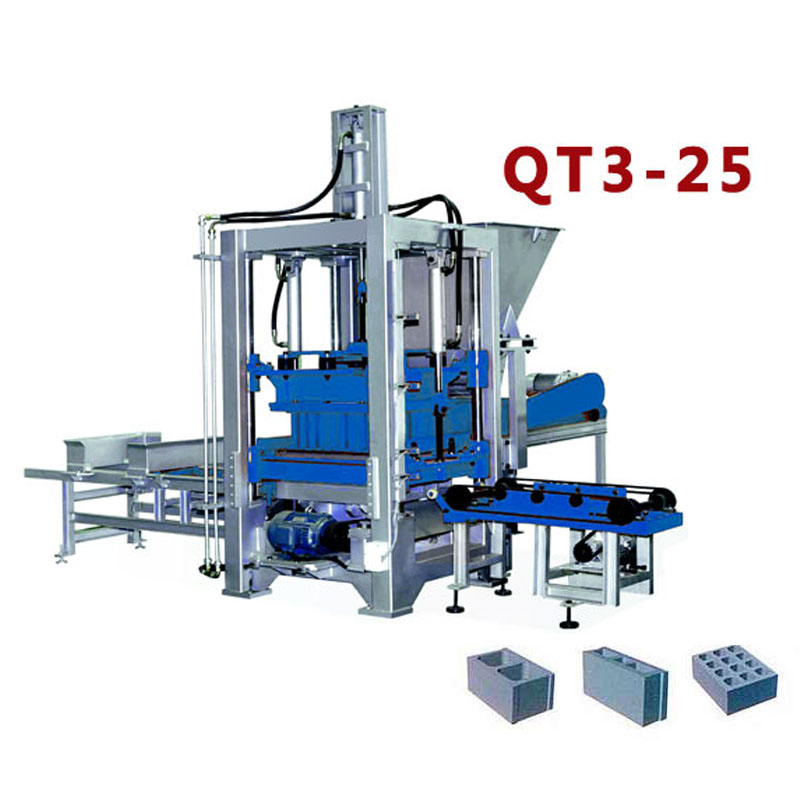 文德QT3-25全自動水泥磚機機是液壓、振動相結合型的水泥制磚機,該磚機機以河砂、石子、礦渣、頁巖、煤矸石、粉煤灰等為主要原料,添加少量水泥,通過振動和壓制成型,經自然養(yǎng)護即可使用。
